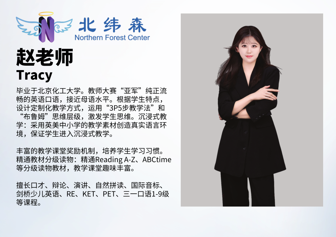 北纬森教育名师。毕业于首都师范大学英语系,具备扎实的专业...